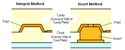 Cavity and core are categorized into integral method and insert method. The method is determined by the part quantity and the molding shape.