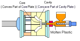In previous chapters, we learned that how molten plastics was injected into the mold. The mold is composed of a cavity and a core. The cavity is a concave cavity plate. The core is a convex core plate. We previously stated that molten plastics is injected into the cavity. Actually, it is injected into the space between the cavity and the core.