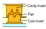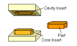 An insert attached to the cavity side is called a cavity insert. An insert that is attached to the core side is called a core insert.