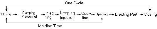 A series of steps necessary to complete one molding, or the period of time spent for the molding.