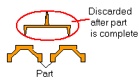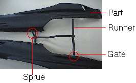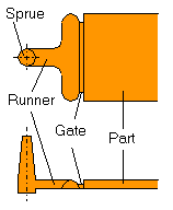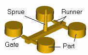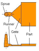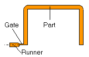 The sprue, the runner, and the gate will be discarded after a part is complete. However, the runner and the gate are important items that affect the quality or the cost of parts..