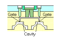 Set a gate position where molten plastics finished filling up in each cavity simultaneously. Same as multiple points gate.