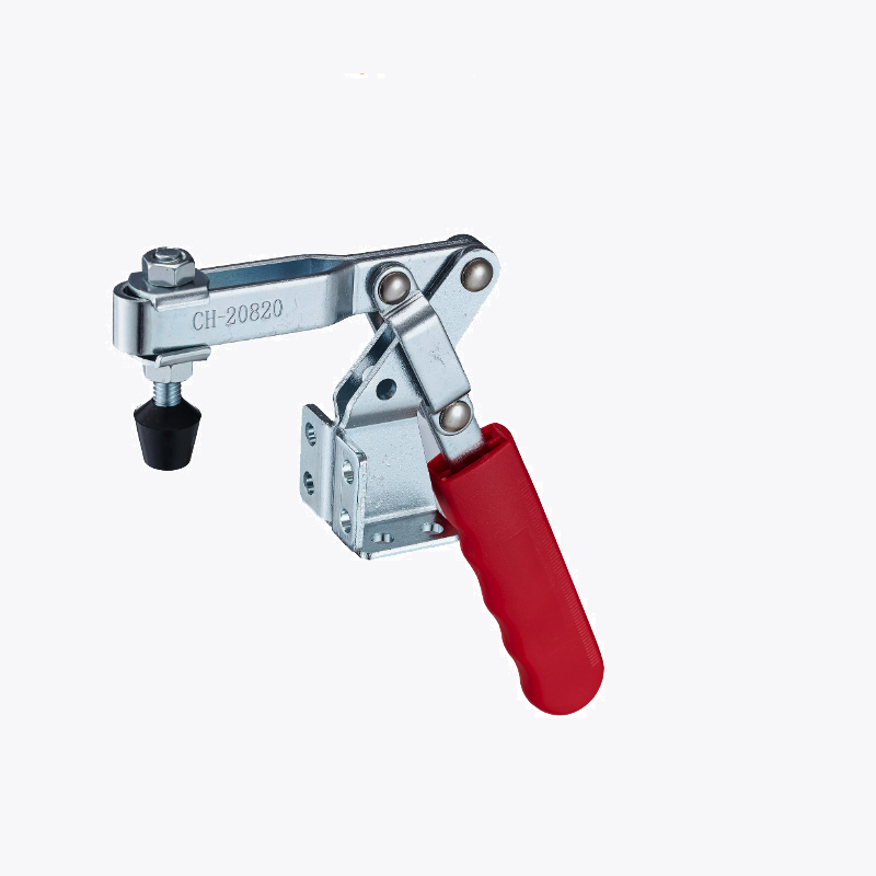 CH-20820 toggle clamp, from the Taiwanese brand Clamptek, is a quick-release clamp with horizontal jaws parallel to the clamping direction. The clamping force is adjusted by actuating the quick-release handle. This clamp is used in jig and fixture systems and in manufacturing workshops.