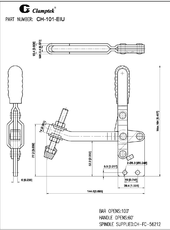 CH-101EIU toggle clamp is a quick-release clamp with a vertical jaw, used in jig and fixture systems and manufacturing workshops.