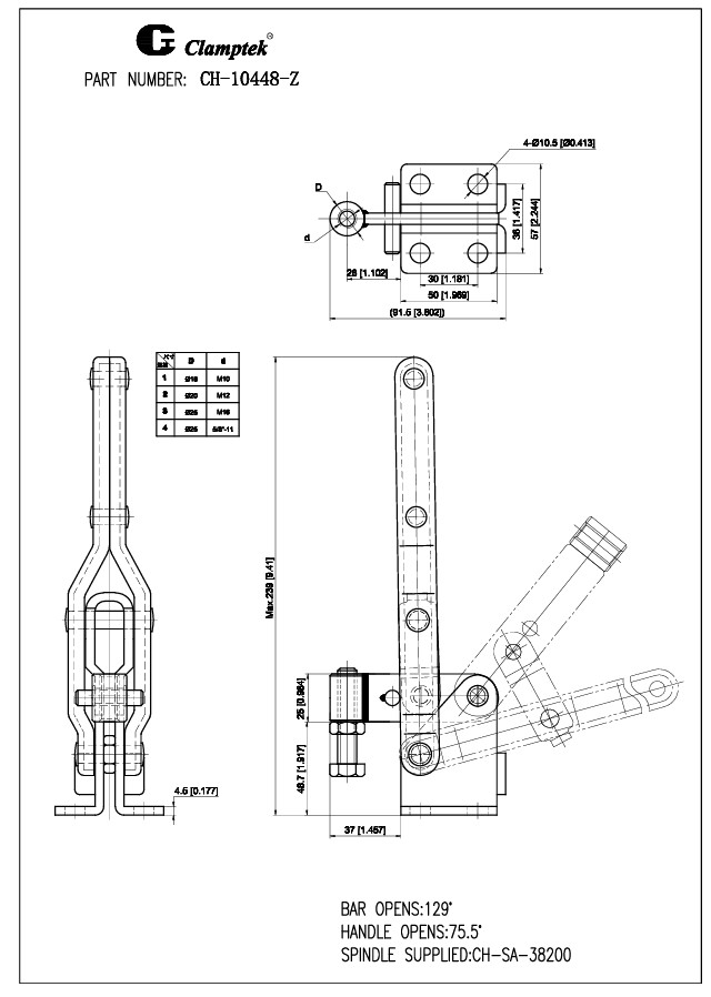 CH10488-Z toggle clamp is a quick-release clamp with a vertical jaw, used in jig and fixture systems and manufacturing workshops.