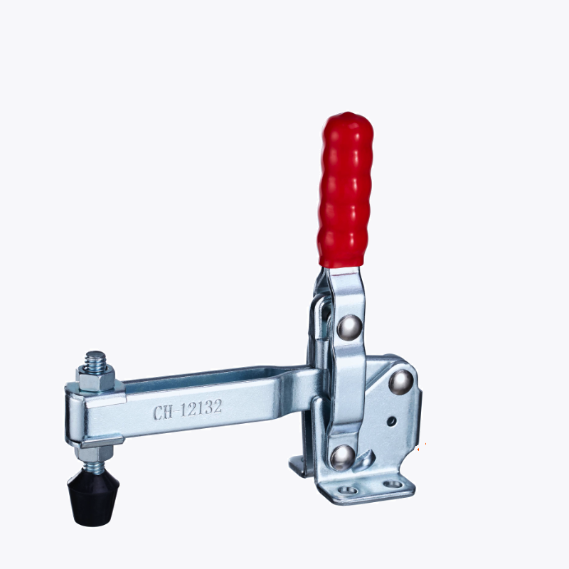 CH-12132 toggle clamp is a quick-release clamp with a vertical jaw, used in jig and fixture systems and manufacturing workshops.