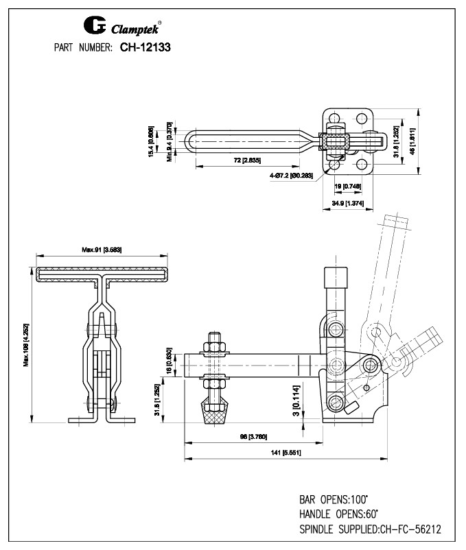 KCH-12133 CH-101-ED toggle clamp is a quick-release clamp with a vertical jaw, used in jig and fixture systems and manufacturing workshops.