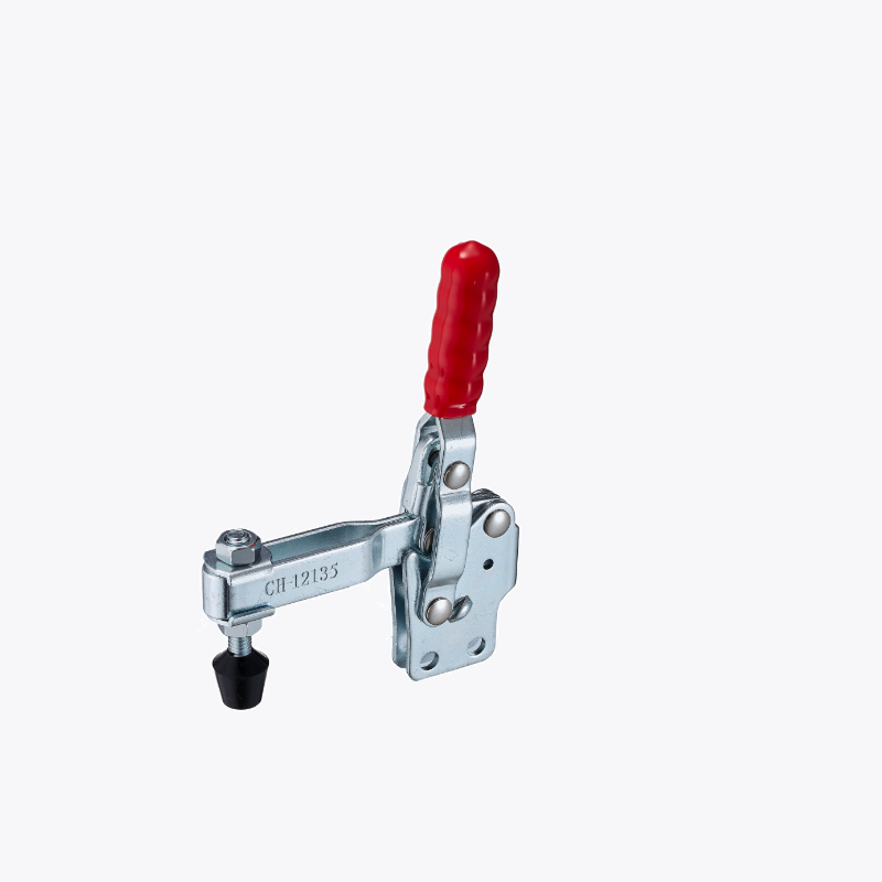 CH-12135 toggle clamp is a quick-release clamp with a vertical jaw, used in jig and fixture systems and manufacturing workshops
