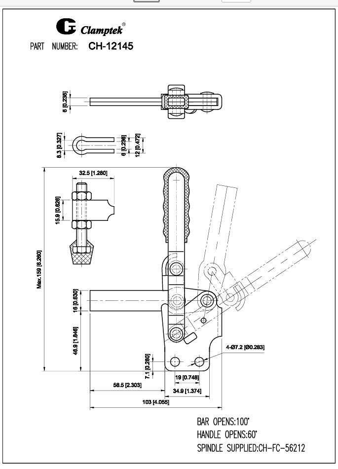CH-12145 toggle clamp is a quick-release clamp with a vertical jaw, used in jig and fixture systems and manufacturing workshops.
