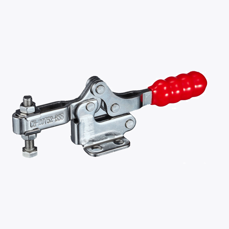 CH-20752-BSS toggle clamp, from the Taiwanese brand Clamptek, is a quick-release clamp with horizontal jaws parallel to the clamping direction. The clamping force is adjusted by actuating the quick-release handle. This clamp is used in jig and fixture systems and in manufacturing workshops.