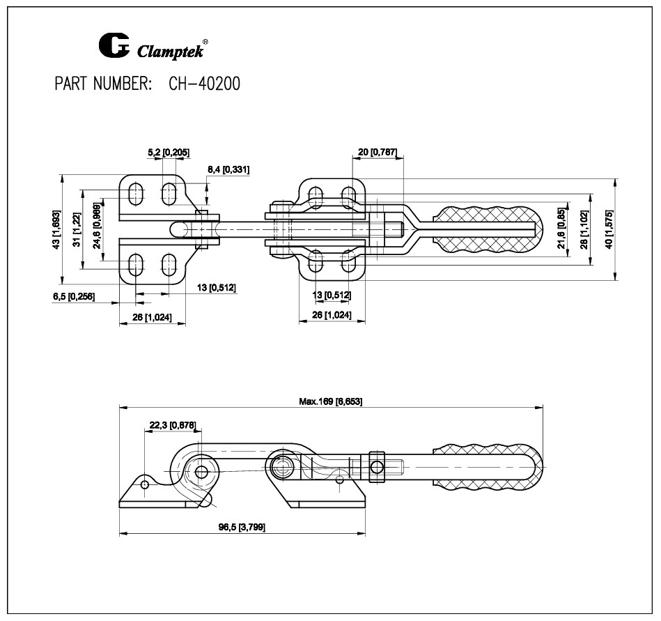 CH-40200 toggle from Clamptek, Taiwan, is a quick-release clamp with a hook-shaped jaw. The clamping force is adjusted by actuating the quick-release handle. This clamp is used in jig and fixture systems and in manufacturing workshops.