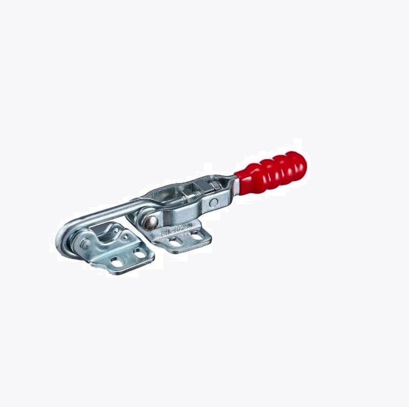 CH-40200 toggle from Clamptek, Taiwan, is a quick-release clamp with a hook-shaped jaw. The clamping force is adjusted by actuating the quick-release handle. This clamp is used in jig and fixture systems and in manufacturing workshops.