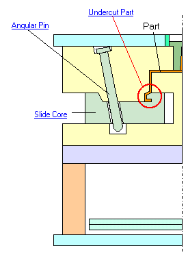 Applied when the part has an inner channel or a rib inside. The method in which a slide core is moved using an angular pin .