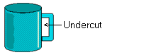Undercut refers to the convex or concave area of part. When removing the part from the mold, you need some device so that the part of the mold which contacts to the undercut can be moved to remove the part from the mold since the part will not be removable directly without the device.