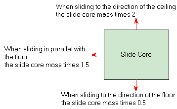The mass when the slide core is sliding varies depending on the direction of sliding.