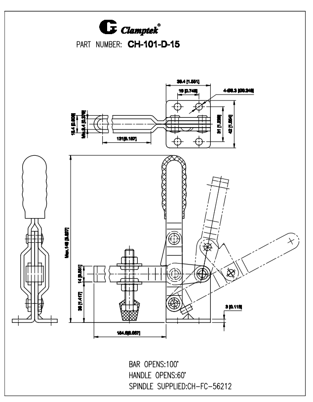 Kẹp định vị CH-101D-15 xuất xứ Đài Loan, là loại kẹp nhanh chóng với kẹp thẳng, được sử dụng trong hệ thống máy móc jig đồ gá, sản phẩm mộc.