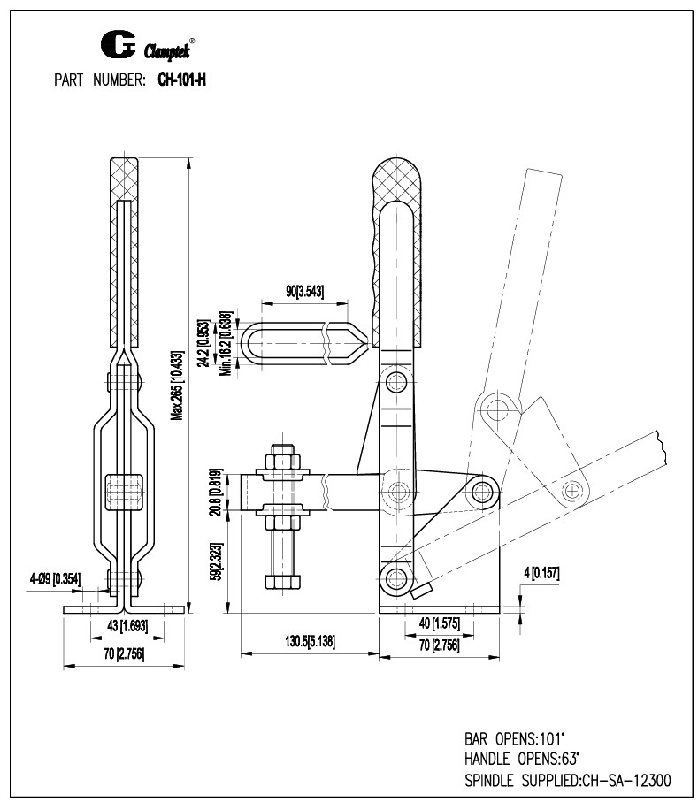 Kẹp định vị CH-101H xuất xứ Đài Loan, là dạng kẹp nhanh với mỏ kẹp thẳng đứng, được sử dụng trong hệ thống máy móc jig đồ gá, xưởng sản xuất.