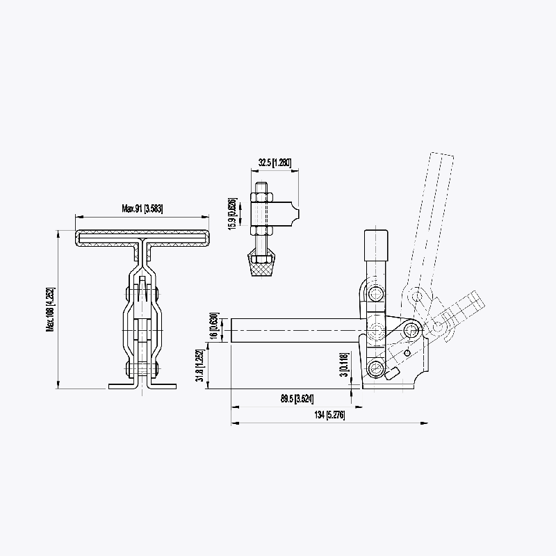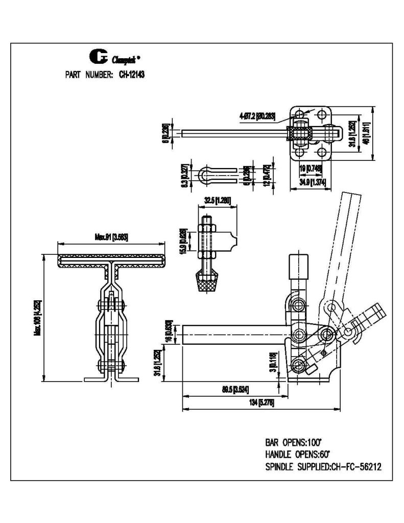 Cam kẹp định vị đứng CH-12143 là loại kẹp gạt nhanh dạng đứng dùng để cố định phôi/chi tiết trong quá trình gia công, lắp ráp, hàn hoặc kiểm tra. Nhờ cơ cấu khóa gạt, kẹp giúp giữ chắc và lặp lại vị trí ổn định, giảm thời gian thao tác so với kẹp truyền thống. Điểm nổi bật của series này là lực kẹp lên đến 227 kg, phù hợp cho các ứng dụng cần độ chắc chắn cao. Thiết kế cho phép góc mở thanh kẹp 100° giúp đặt/lấy phôi thuận tiện, đồng thời góc mở tay cầm 60° tạo thao tác gạt nhanh, gọn và an toàn trong không gian làm việc.