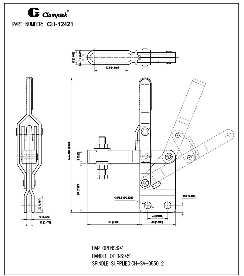 Kẹp định vị CH-12421 xuất xứ Đài Loan, là dạng kẹp nhanh với mỏ kẹp thẳng đứng, được sử dụng trong hệ thống máy móc jig đồ gá, xưởng sản xuất.