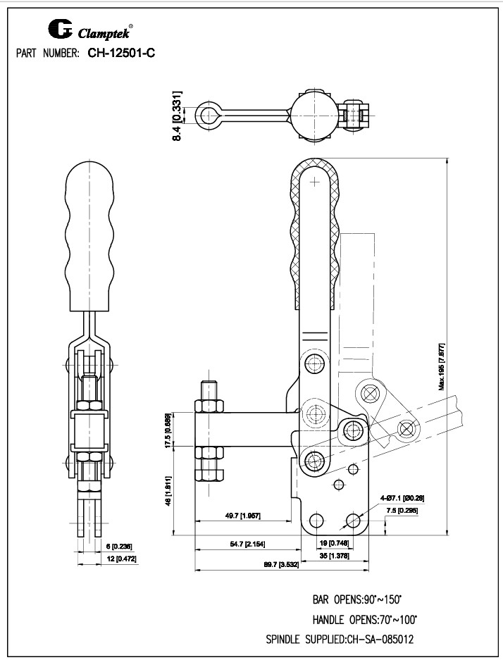 Kẹp định vị CH-12501C xuất xứ Đài Loan, là dạng kẹp nhanh với mỏ kẹp thẳng đứng, được sử dụng trong hệ thống máy móc jig đồ gá, xưởng sản xuất.