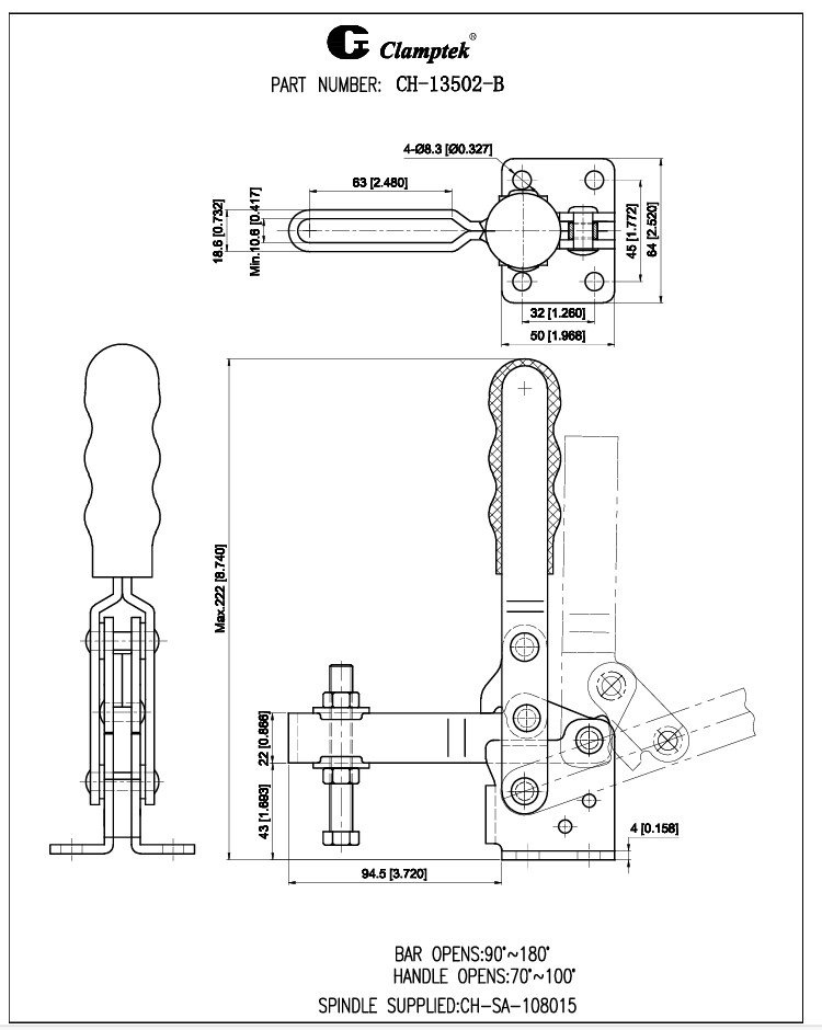 Kẹp định vị CH-13502B xuất xứ Đài Loan, là dạng kẹp nhanh với mỏ kẹp thẳng đứng, được sử dụng trong hệ thống máy móc jig đồ gá, xưởng sản xuất.