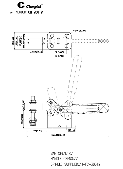 Kẹp định vị CH200W xuất xứ Đài Loan, là dạng kẹp nhanh với mỏ kẹp nằm ngang, được sử dụng trong hệ thống máy móc jig đồ gá, xưởng sản xuất.