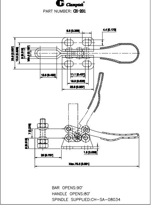 Kẹp định vị CH-201 thương hiệu clamptek Đài Loan, là dạng kẹp nhanh với mỏ kẹp nằm ngang theo song song với chiều bắt kẹp, chuyển đổi lực kẹp nhờ tác động vào tay kẹp nhanh, Kẹp được sử dụng trong hệ thống máy móc jig đồ gá, xưởng sản xuất.