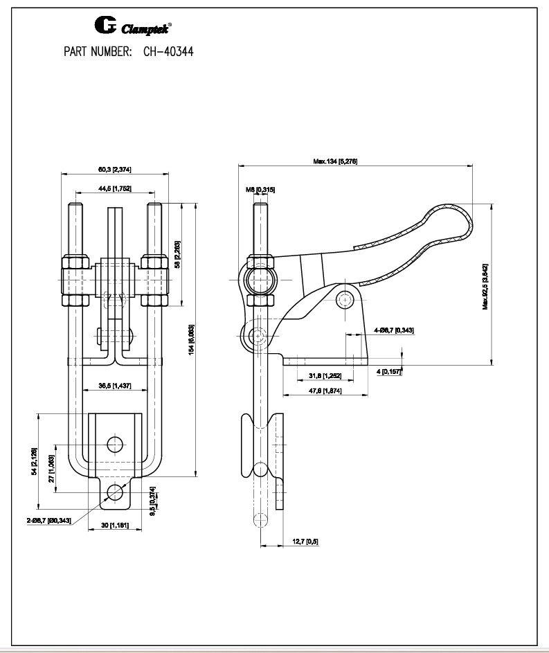 Kẹp định vị CH-40344 thương hiệu clamptek Đài Loan, là dạng kẹp chốt nhanh với mỏ kẹp nằm dạng móc, chuyển đổi lực kẹp nhờ tác động vào tay kẹp nhanh, Kẹp được sử dụng trong hệ thống máy móc jig đồ gá, xưởng sản xuất.