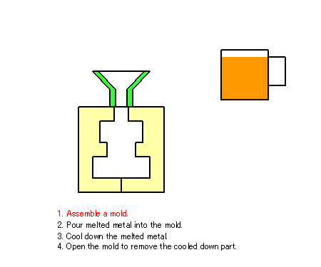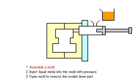 Sản xuất sản phẩm theo cách này bằng cách nấu kim loại trở thành thể lỏng, và bơm kim loại lỏng vào lòng khuôn.