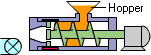 Đặt hạt nhựa vào phễu ( thùng chứa vật liệu trên máy). Sau đó hóa dẻo vật liệu bằng cách trộn nó với trục vít có bộ gia nhiệt. Đùn vật liệu khuôn ra bằng trục vít qua một cái lỗ nhỏ ở đỉnh khuôn ( điều chỉnh thiết bị ra để đưa ra hình dạng của sản phẩm mong muốn).