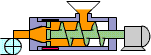 1) Cấp liệu vào phễu 2) Khuấy trộn, đẩy ra qua trục vít 3) Hoàn thành