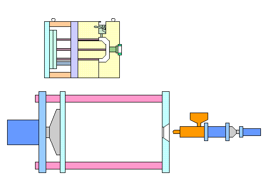 型締め装置で型厚の調整をして、型締めしても金型を締め付けないようにします。
