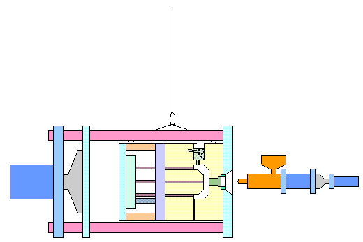 型締め装置を前進させて、型厚を調整して、可動側型板を可動側取付板に取付けます。