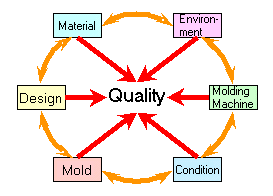 Chất lượng của sản phẩm đúc (Hình dạng, kích thước và tính năng) có liên hệ tới các yếu tố khác nhau trong quá trình đúc. Khi hình dáng của sản phẩm đúc phức tạp, các yếu tố của quá trình đúc trở nên phức tạp. người ta nói rằng rất khó để dự đoán mọi hiện tượng liên quan đến quá trình đúc ngay cả khi có thể biết trước được hiện tượng đó. Do đó, cần thiết kế sản phẩm đúc qua thiết kế và kiểm nghiệm với nhiều trường hợp. Quá trình đúc được phân thành 5 quá trình dưới đây. Chất lượng của sản phẩm đúc có quan hệ chặt chẽ với những quá trình này.