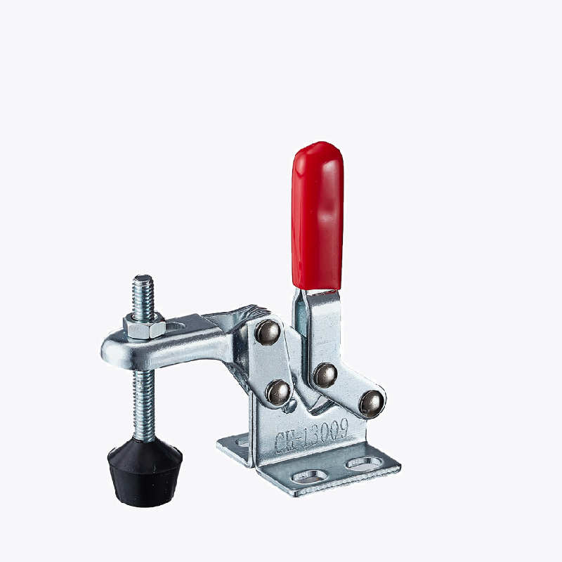 CH-13009 toggle clamp is a quick-release clamp with a vertical jaw, used in jig and fixture systems and manufacturing workshops.