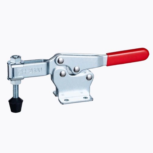 CH-2600 toggle clamp, from the Taiwanese brand Clamptek, is a quick-release clamp with horizontal jaws parallel to the clamping direction. The clamping force is adjusted by actuating the quick-release handle. This clamp is used in jig and fixture systems and in manufacturing workshops.