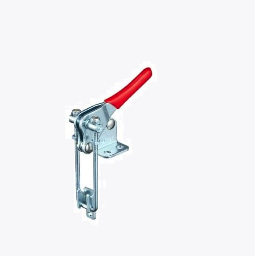 CH-40324 toggle from Clamptek, Taiwan, is a quick-release clamp with a hook-shaped jaw. The clamping force is adjusted by actuating the quick-release handle. This clamp is used in jig and fixture systems and in manufacturing workshops.