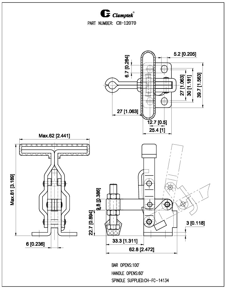 Thông số kỹ thuật kẹp định vị CH: