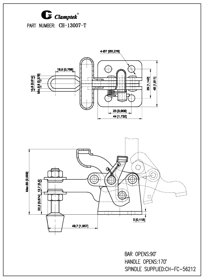 Kẹp định vị CH-13007T xuất xứ Đài Loan, là dạng kẹp nhanh với mỏ kẹp thẳng đứng, được sử dụng trong hệ thống máy móc jig đồ gá, xưởng sản xuất.