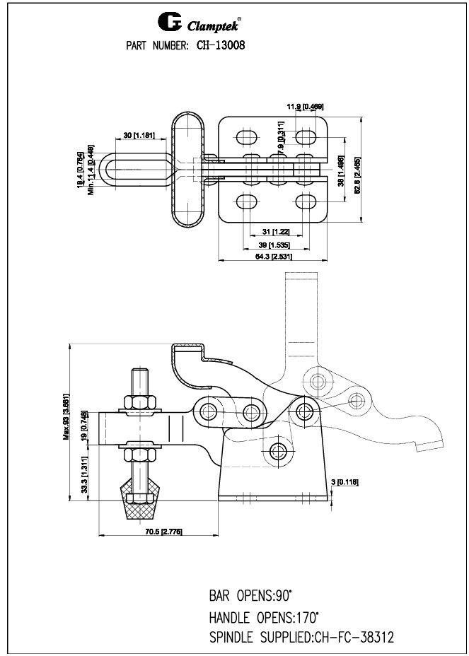 Kẹp định vị CH-13008 xuất xứ Đài Loan, là dạng kẹp nhanh với mỏ kẹp thẳng đứng, được sử dụng trong hệ thống máy móc jig đồ gá, xưởng sản xuất.