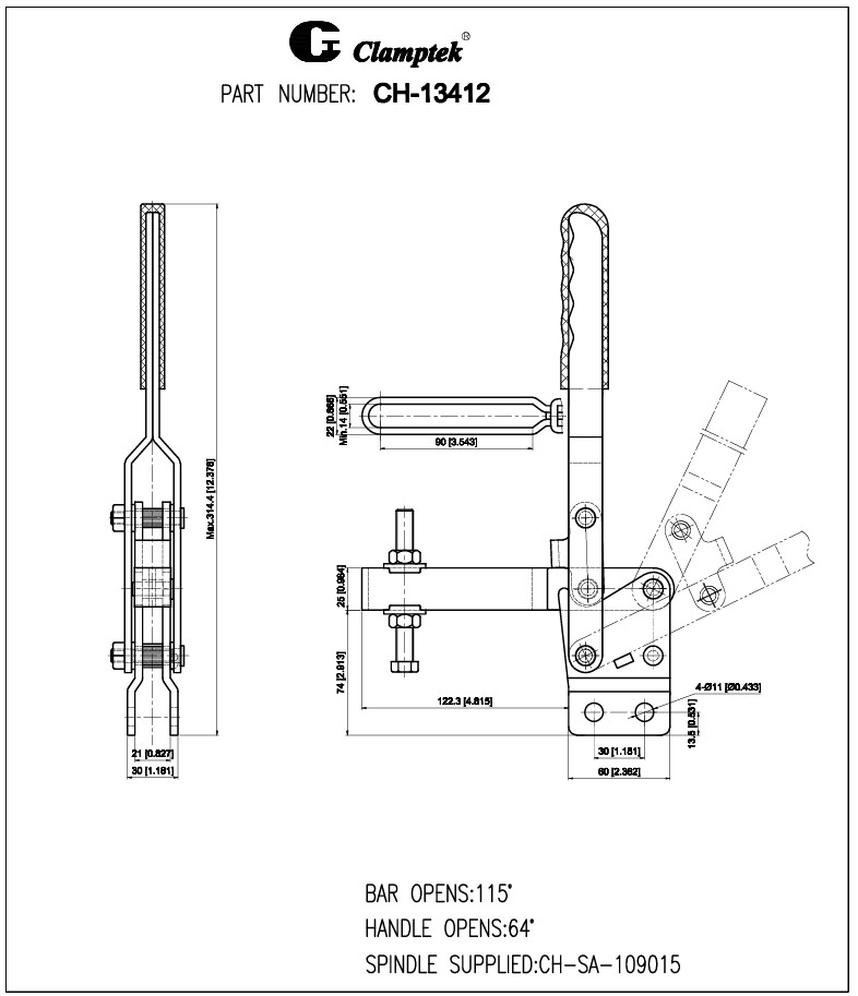 Kẹp định vị CH-13412 xuất xứ Đài Loan, là dạng kẹp nhanh với mỏ kẹp thẳng đứng, được sử dụng trong hệ thống máy móc jig đồ gá, xưởng sản xuất.