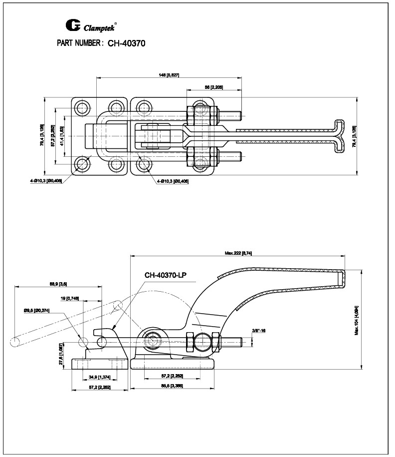 Kẹp định vị CH-40370 thương hiệu clamptek Đài Loan, là dạng kẹp chốt nhanh với mỏ kẹp nằm dạng móc, chuyển đổi lực kẹp nhờ tác động vào tay kẹp nhanh, Kẹp được sử dụng trong hệ thống máy móc jig đồ gá, xưởng sản xuất.