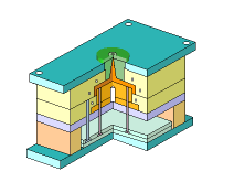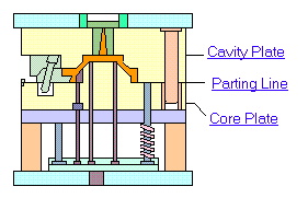 Khuôn hai tấm là loại khuôn phổ biến nhất có mặt phân khuôn “parting line” (PL: Nơi mà khuôn) được chia làm 2 phần – Bên cố định và bên di động.