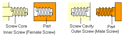 Phần này sẽ trình bày các kiểu khuôn cơ bản và chuyển động của nó để đúc ren vit. Đúc khuôn ren vít tương tự như có phần cắt ngang. Có một vài phương pháp đúc khác nhau tùy theo hình dạng của ren vít hoặc loại ren vít (ren trong hoặc ngoài), và mỗi phương pháp sẽ giải thích ở hình mô phẳng dưới đây